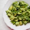 Mit Salz abschmecken, auf Teller verteilen und mit Koriandergrün bestreut servieren.