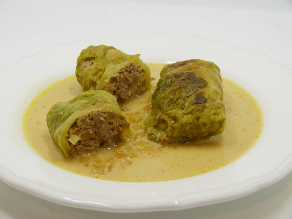 Das Ergebnis hat uns richtig gut gefallen: die Wirsingwickel sind schön herzhaft, aber nicht zu schwer und besonders der Apfel macht sich sehr gut in der Füllung. Und die sahnige Sauce passt gut dazu; wobei ich mir auch gut vorstellen könnte, statt Sahne Crème fraîche zu verwenden.