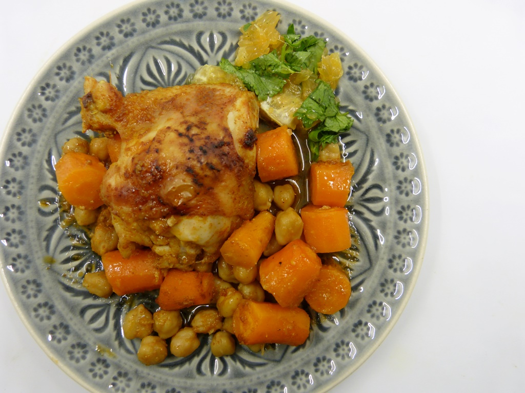 Das ist ein einfaches Ofengericht, das ohne großen Arbeitsaufwand auf dem Tisch steht. Es wird eine Marinade gemixt, die die Basis des Gerichts ist und dann landet alles im Ofen. Nebenbei macht man noch eine kleine Salsa aus Orangen und Koriandergrün.