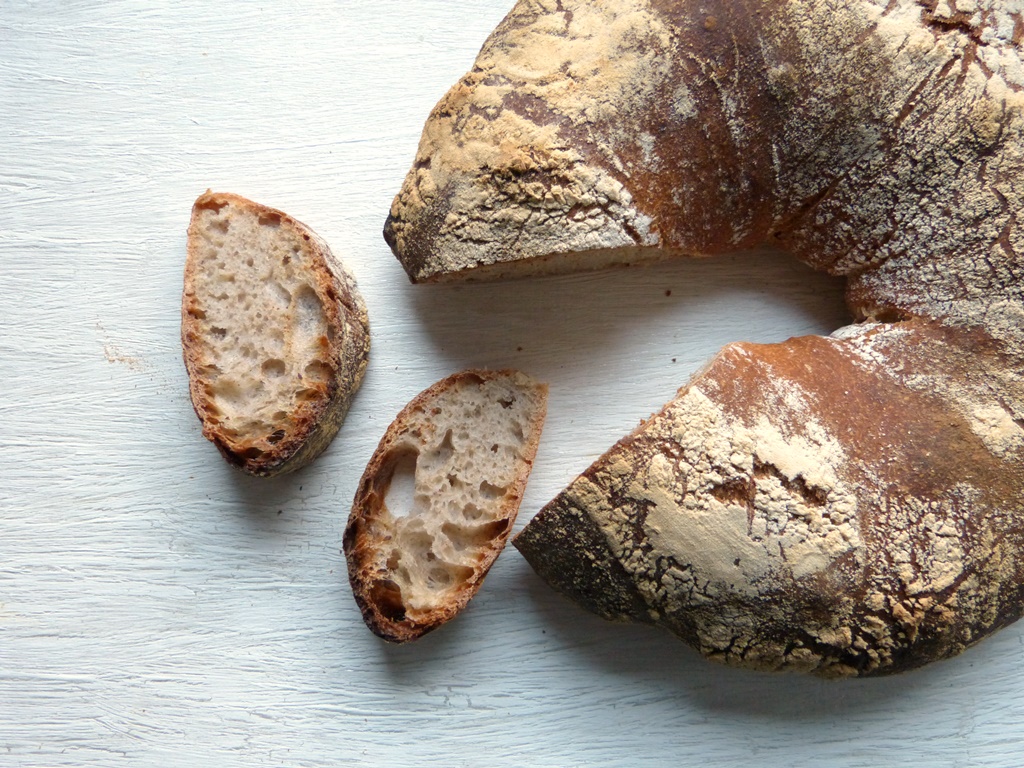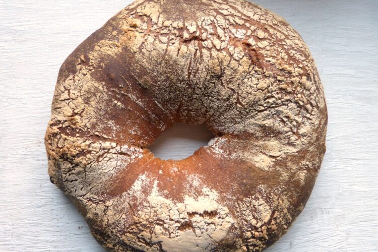 Das Rezept kommt aus einer Versuchsbäckerei in Nantes, dort hat man es für Daniel Leader gebacken. Der Buchweizen verleiht dem Brot einen komplexen Geschmack und die ringförmige Form sorgt dafür, dass man ordentlich was von der knusprigen Kruste hat.
