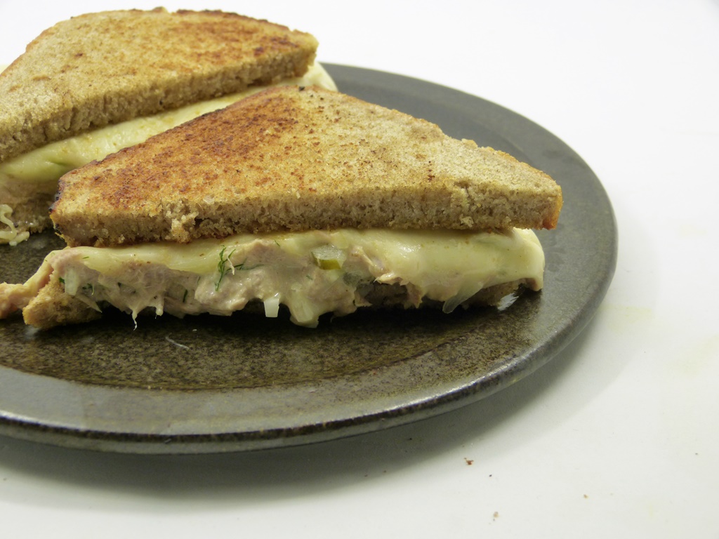 Das Brot habe ich (unter anderem) für Tuna-Melt-Sandwiches benutzt: in Butter (bei mir die MSG-Butter von oben) gebratenes Brot, belegt mit einer Masse aus Thunfisch, Mayonnaise, Dillgurken, Staudensellerie, und Dill und dann mit Käse überbacken. Und klar, dass die Rezepte für Mayonnaise und Dillgurken im Buch zu finden sind.