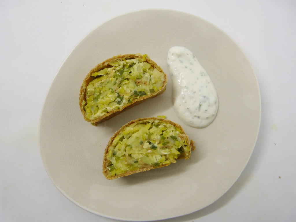Lauchstrudel – der kernige Strudelteig aus Weizenvollkornmehl passt sehr gut zur Füllung aus Lauch und Kartoffeln. Die Füllung war schön würzig und der Teig lies sich problemlos bearbeiten.