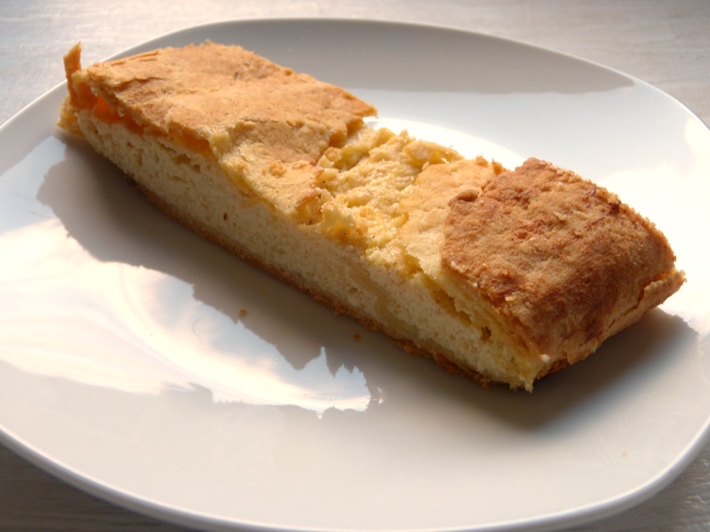 Der Topfenstrudel steckt in einer Hülle aus Sauerrahmteig, und das ist ein Teig, den ich in Zukunft für alles mögliche verwenden werde – er ist schnell geknetet, läßt sich gut verarbeiten und die leicht säuerliche Rahmnote ist toll. Dass der Strudel so aussieht, ist nicht dem Rezept zu verdanken, sondern meiner Dussligkeit beim Wickeln.