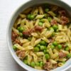 Zum Servieren auf Schalen verteilen. Knusprige Kichererbsen darauf verteilen, nach Wunsch mit Koriandergrün bestreuen und gleich servieren.