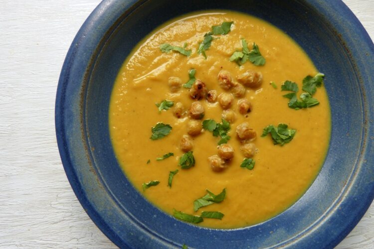 Das Tahin sorgt hier für ein nussiges Aroma und eine schöne cremige Konsistenz, und die Kichererbsen haben eine doppelte Funktion: ein Teil landet in der Suppe und sorgt für Substanz und der Rest wird geröstet und quasi als Croutons serviert.
