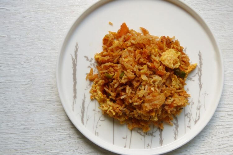 Gebratener Reis ist für mich das klassische Essen, für das ich wirklich kein Rezept brauche. Ich koche gerne mehr Reis, um ihn dann später zu braten und das ist der klassische Kühlschrank-Leerer – Gemüse, Fleischreste, etwas Ei, was eben da ist wandert in den Wok. Insofern ist es bemerkenswert, dass im New York Times Kochbuch* gleich zweimal gebratenen Reis gibt.