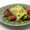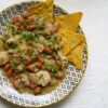 Für die Brühe die Zwiebeln schälen und grob würfeln. Knoblauch schälen und die Zehen halbieren. Lammhals, Zwiebeln und Knoblauch ohne Fettzugaben von allen Seiten scharf anbraten, dann ca. 2 l Wasser angießen – das Fleisch soll bedeckt sein. Gewürze und Kräuter zugeben, mit Salz würzen und die Suppe bedeckt bei niedriger Temperatur 2 h köcheln lassen. Ich habe es anders gemacht; Energiesparen ist angesagt und so habe ich die Suppe im Instant Pot bzw. Schnellkochtopf gegart: eine Stunde bei hohem Druck, dann abdampfen. Wie auch immer ihr es macht, am Ende soll sich das Fleisch leicht von den Knochen lösen.