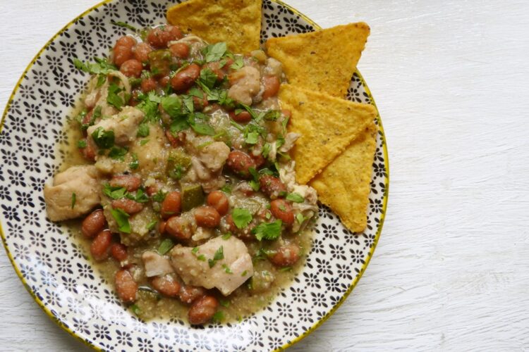 Hier ist püriertes hominy aus der Dose die Saucengrundlage, dazu kommen Hühnchen, Jalapeños und Cannellini-Bohnen. Das Chili ist schön cremig, angenehm scharf und steht dank der Zubereitung im Slowcooker (ich nutze da die entsprechende Funktion des Instant Pot) ohne großen Aufwand auf dem Tisch.
