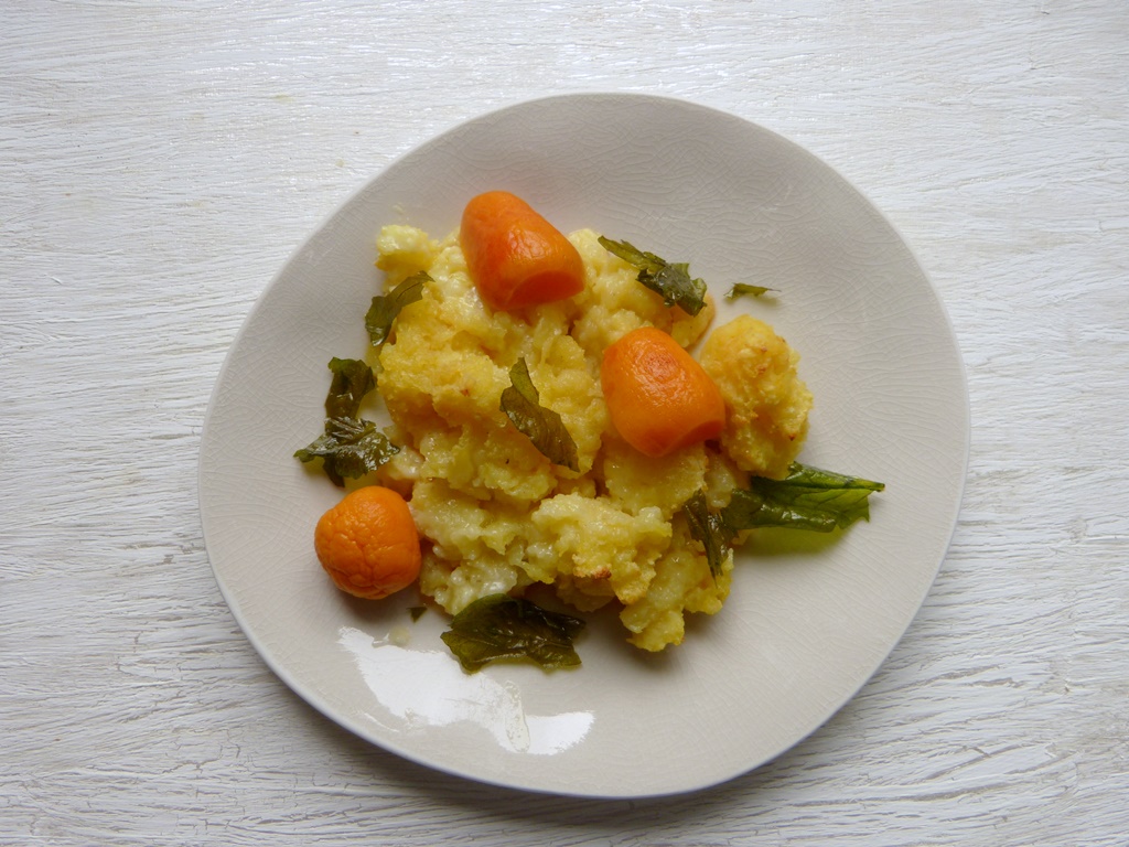 Aber wie das so ist mit Familiengerichten – Kartoffelsterz gab es nie, den kannte ich bisher nur dem Namen nach. Sterz ist eigentlich ein Armeleuteessen – gekochte Kartoffeln werden gerieben, mit etwas Mehl zu Bröseln verarbeitet und dann nochmal gegart. Das Essen gibt es nicht nur in Bayern – Österreich, Kroatien und Slowenien können auch mitreden.