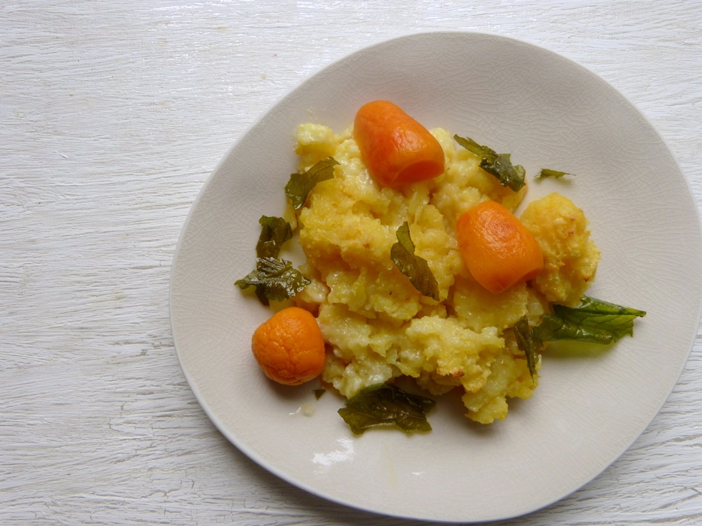 Das Rezept, das ich ausprobiert habe, kommt aus Andreas Schinharls bayerischem Kochbuch* – und es ist (natürlich) eine Luxusversion. Der Sterz wird mit etwas Sahne im Ofen gegart und es gibt Radieschen dazu – die Radieschen werden eingelegt, die Blätter frittiert und das ist eine Kombination, die uns richtig Spaß gemacht hat.