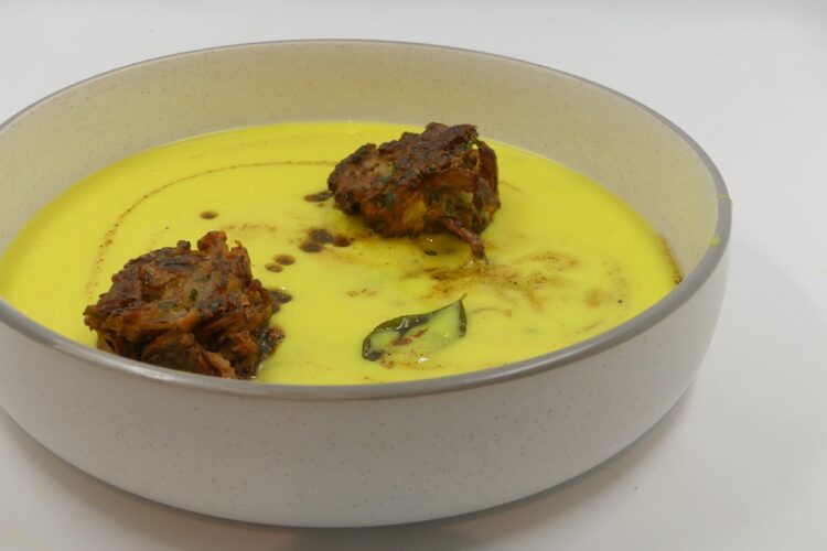Man kann die Suppe mit Reis oder Fladenbrot servieren – oder man gibt diese Zwiebelfritter hinein. Die knusprigen Küchlein sind ein typisches Streetfood und passen sehr gut in die Suppe.