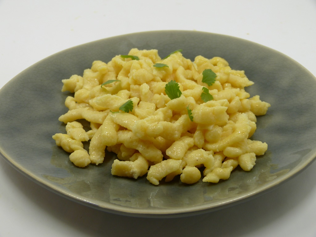 Spätzle. Wie unspektakulär – nein, das stimmt nicht. Im Spätzleteig ist nämlich eine beachtliche Menge Tofu untergebracht. Ich überlege ernsthaft, das jetzt immer so zu machen, denn die Spätzle haben einen fantastischen Biss.