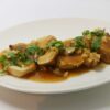 Die Rezepte sind eine spannende Mischung. Es gibt viel Japanisches, aber ebenso oft werden die japanischen Zutaten in Gerichten europäischer Prägung eingesetzt. Ich erwähnte ja oben die Sterne – und falls Ihr Euch die bange Frage stellt: „Kann ich das nachkochen?“ – Ja, könnt Ihr. Es sind einfache Rezepte dabei und auch komplexere mit mehreren Komponenten, aber alles ist nachvollziehbar aufgeschrieben. Manche Zutaten können eine Herausforderung sein – Yuzu, Koji und Ähnliches gibt es nicht an jeder Ecke, aber in größeren Städten im japanischen Supermarkt. Oder man bestellt online.
