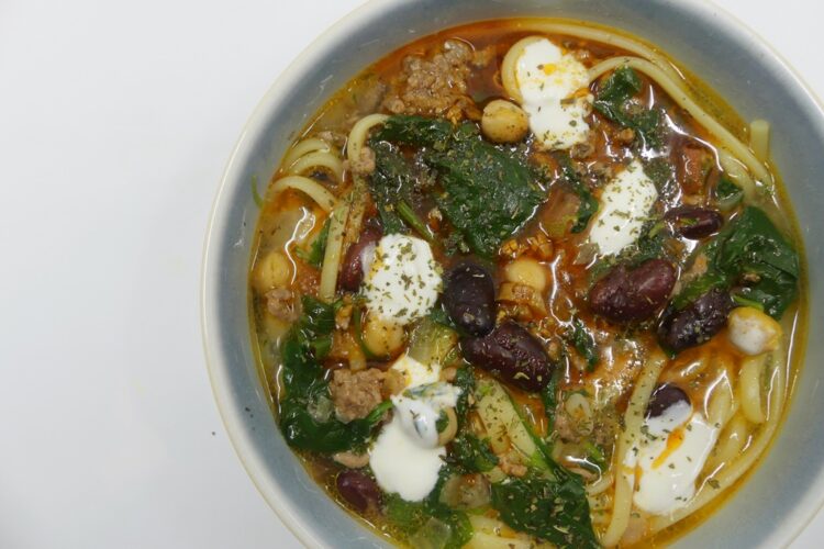 Die afghanische Küche weißt Einflüsse aus Indien und dem Iran auf – und sie ist nicht kompliziert. Brot ist sehr wichtig und auch Reis und man isst richtig viel Joghurt. Und heute möchte ich Euch ein richtiges Wohlfühlessen vorstellen – es gibt Asch, eine dicke Nudelsuppe mit Hackfleisch, Hülsenfrüchten und Joghurt.