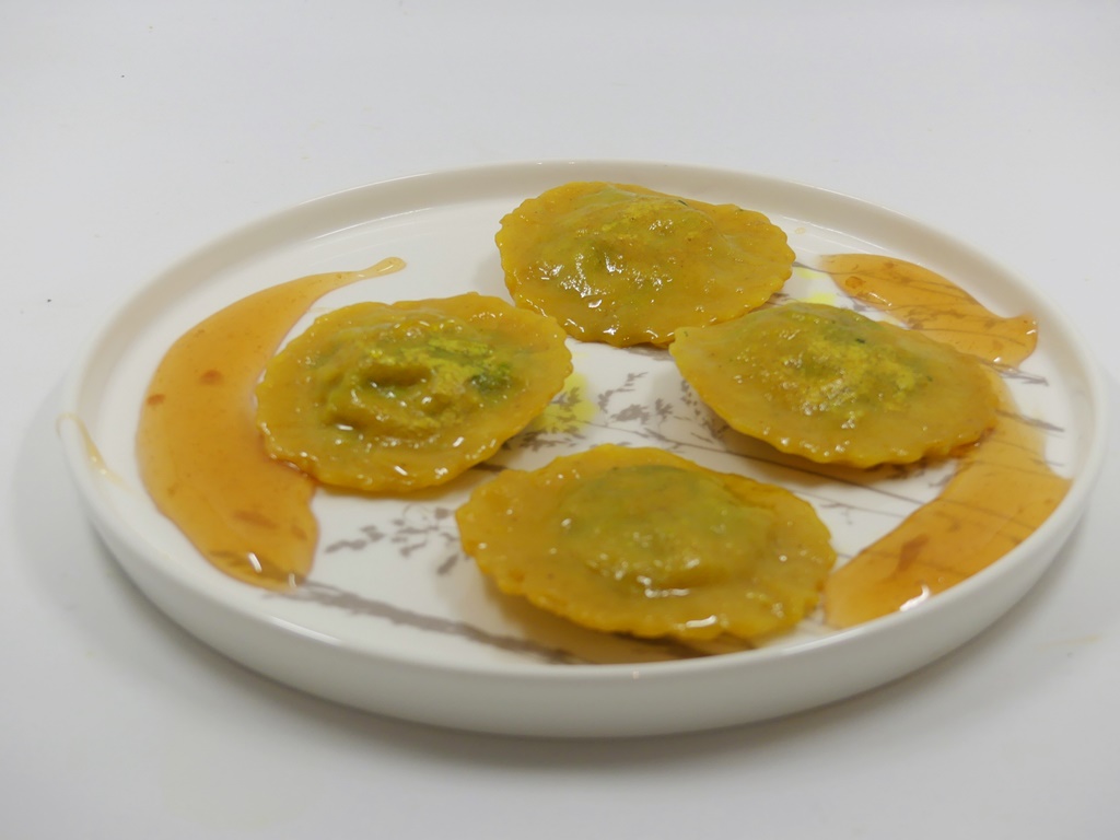 Salzwasser in einem großen Topf zum Kochen bringen und die Teigtaschen darin ca. 5 min garen; sie sind fertig, wenn sie oben schwimmen. Abgießen, gut abtropfen lassen, dann etwas Butter in einer großen Pfanne erhitzen und die Teigtaschen darin leicht anbraten.