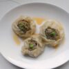Die Teigtaschen werden gekocht, dann noch in etwas Butter gebraten. Grundlage ist ein eifreier Dumplingteig, der sich prima verarbeiten lässt. Statt dem von mir verwendeten Rinderhack könnte ich mir auch Hühnchenhack vorstellen oder eine Veggie-Variante. 75 Teigtaschen, wie es im Rezept steht, habe ich aus den Zutaten allerdings nicht herausbekommen, das halte ich eher für eine Phantasiezahl.