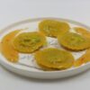Den Teig in 4 Teile teilen. Nacheinander jedes Teil in 8 gleich schwere Teile teilen, zu Kugeln rollen und diese zu ca. 8 cm großen Kreisen ausrollen.