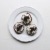 In die Mitte jedes Kreises etwas Füllung setzen und die Ränder leicht mit Wasser befeuchten. Ein Teigblatt in die Hand legen, den Teig zu einer Schale formen und mit der anderen Hand den Teig rundherum in kleinen Fältchen an die Füllung andrücken.