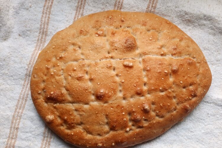 Es ist schon das 71. Mal, das Zorra dankenswerterweise das Synchronbacken organisiert – es gibt ein Rezept, und wer mitmachen möchte, backt es mehr oder weniger zeitgleich. Diesmal hat mich das sehr gereizt, denn das armenische Fladenbrot nach Ben Gingi sah einfach zum zu gut aus. Matnakash kannte ich noch gar nicht: es ist ein armenisches Fladenbrot mit einem Hefeteig aus Weizenmehl und einer ganz typischen Form; optisch erinnert es an das türkische Ramazan Pidezi.