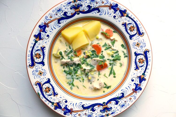 Hier kommt ein belgischer Klassiker: Waterzooi heißt eigentlich „Wassersud“, was eine ziemliche Untertreibung ist – der flämische Eintopf wird mit Huhn und reichlich Gemüse gekocht und mit Eigelb und Sahne gebunden – da ist nichts wässrig.
