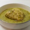 Zum Servieren in tiefe Teller schöpfen und mit Mangochutney und Koriandergrün garnieren.