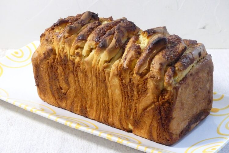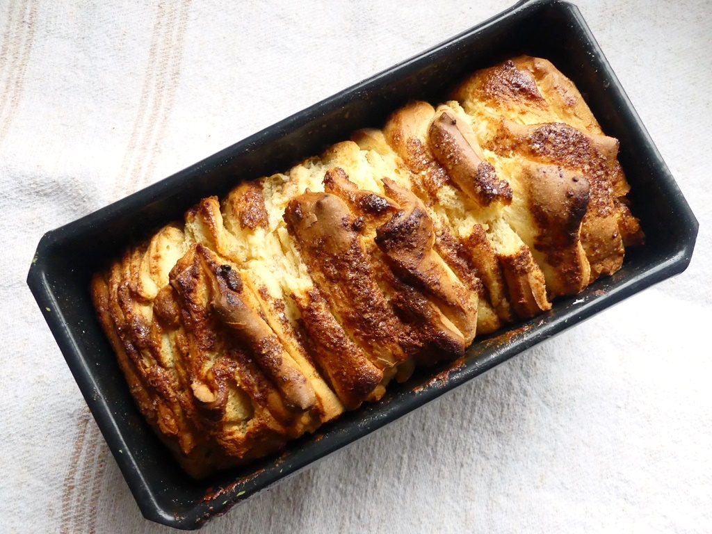 Es wird ein nicht zu süßer Hefeteig geknetet und mit einer würzigen Marzipanmasse gefüllt. Das Ergebnis ist ein buttriger, karamelliger Kuchen, der bei uns im Handumdrehen verschwunden ist – man zupft, dann nochmal ein bisschen, dann wieder, und zack, ist er aufgefuttert. Ich schätze, ich werde mal Marzipan nachkaufen….