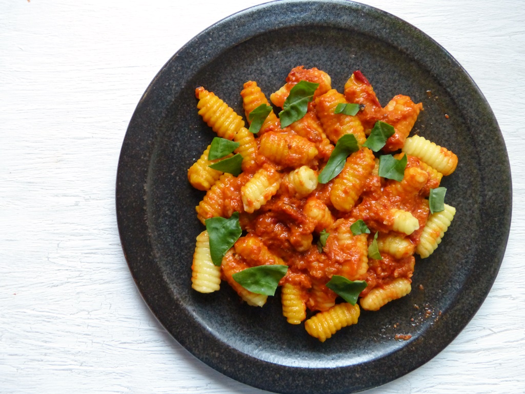 Für die restlichen Paprikaschoten habe ich mich an dieses Gericht erinnert – die Malloreddus mit pikantem Paprikapesto sind ein echtes Wohlfühlgericht und machen Spaß bei der Herstellung.