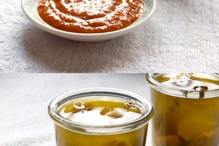 Wie versprochen, kommen hier die Rezept für den konfierten Knoblauch und die frische, fruchtige Harissa.