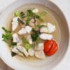 Suppe in tiefe Teller oder Schalen schöpfen und mit gebratenen Zwiebeln und einem Klecks Mabooch servieren.