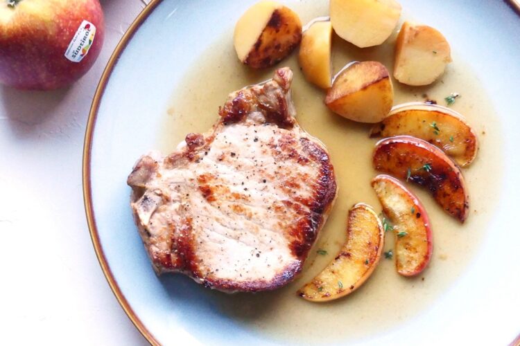 Genaugenommen mit Äpfeln aus Südtirol. Südtirol ist nicht so weit weg, die Äpfel von dort sind hier allgegenwärtig und landen häufig auch in meinem Obstkorb. Für dieses Rezept habe ich aber ein Carepaket aus Südtirol bekommen und durfte mir die Sorte aussuchen. Entschieden habe ich mich für Braeburn, der zählt zu meinen Lieblingssorten: ich mag das süß-säuerliche Aroma und die knackige Konsistenz. Außerdem ist der Apfel hinten raus ein wenig herb, und das passt wunderbar zu herzhaften Gerichten – ich bin ja keine Süße.