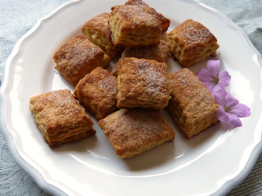Etwas Süßes zum Schluss: das sind wunderbar blättrige Kekse. Normalerweise werden sie mit ukrainischem Frischkäse gemacht – wie man sieht geht aber auch Skyr.