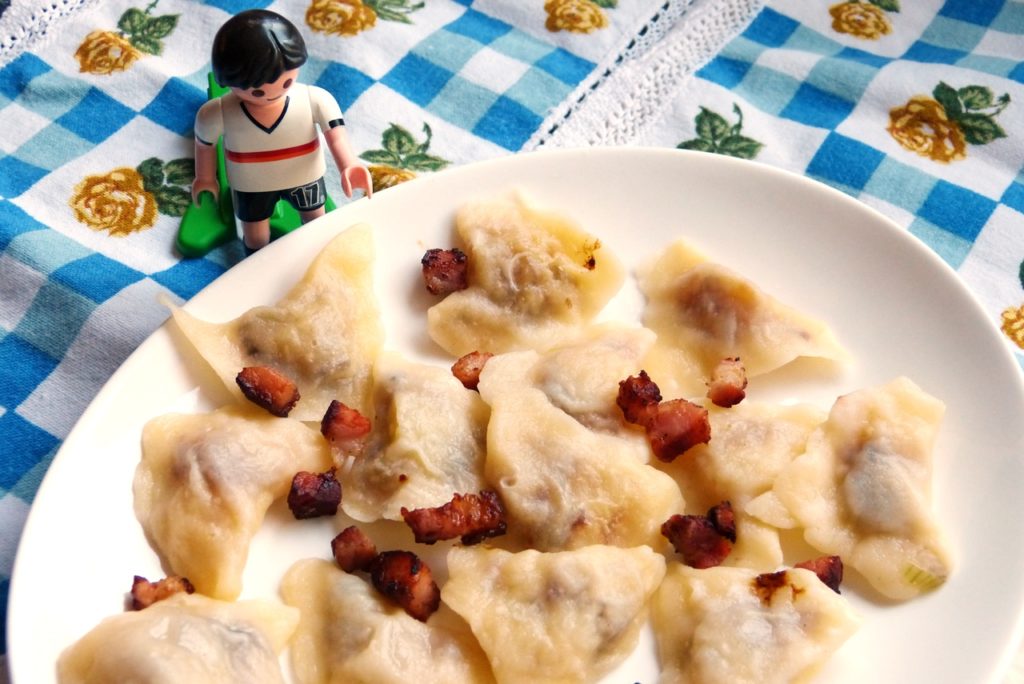 Nochmal Wareniki, diesmal mit einer Füllung aus Kartoffeln und Schalotten.