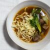 Nochmal Borschtsch, aber in einer filigraneren Variante als klarer Weihnachtsborschtsch mit Pilztäschchen.