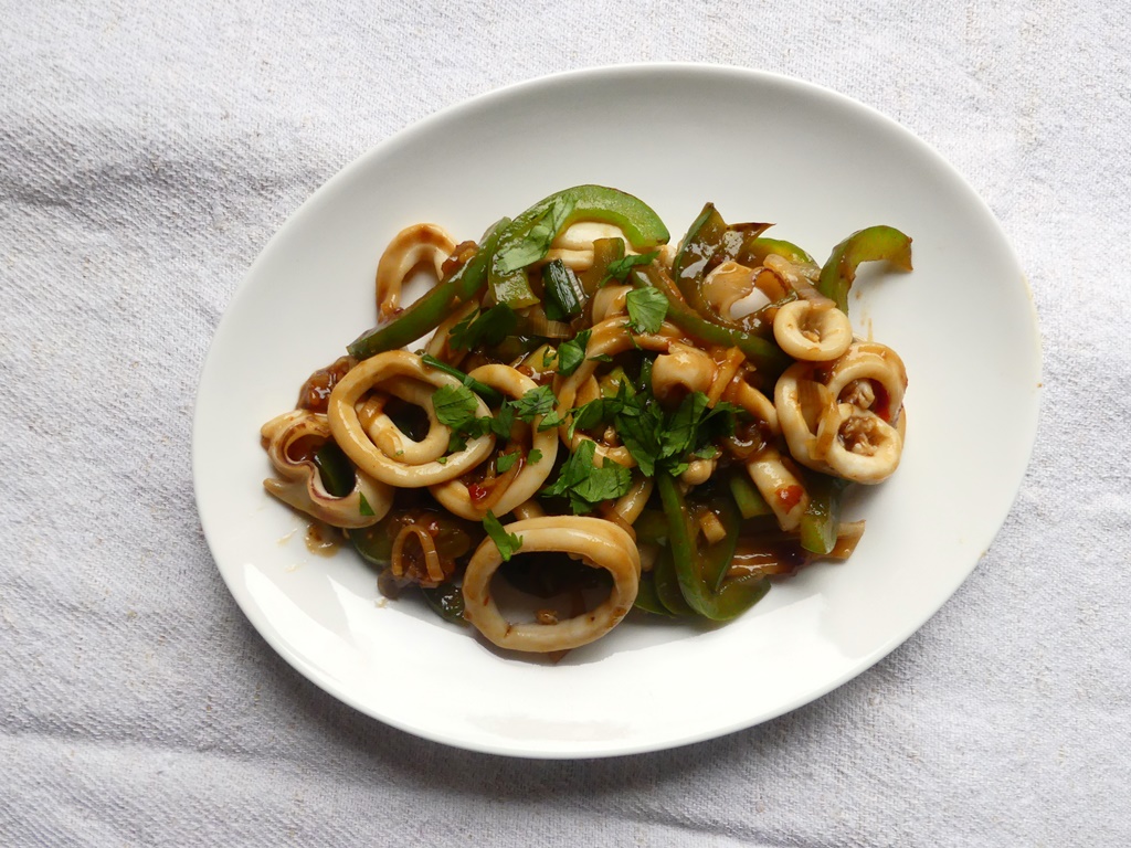 Es gibt einige Rezepte für Rotgeschmortes im China-Kochbuch von Céline Chung*. Natürlich den berühmte Schweinebauch, den ich hier und hier schon einmal zugebereitet habe, es gibt Auberginen – und eben Tintenfisch. Und als Fan von Rotgeschmortem musste ich das natürlich ausprobieren.
