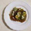 Dieses Buch nun hat er der Küche seiner Heimatstadt gewidmet, er teilt Rezepte und Geschichten seiner Stadt und seiner Familie. Ich beginne mit den Rezepten, die sind nach den Jahreszeiten gegliedert. Fadi Kattan stellt sowohl klassische Gerichte vor wie zum Beispiel Makloube, den gestürzten Reis in einer Version mit Blumenkohl, die Teigtaschen Sish Barak , das Gemüse Moloukia oder Shawarma. Vielen Rezepte hat er aber auch seinen eigenen Stempel aufgedrückt und sie behutsam modernisiert – da gibt es eine Brioche, die mit Mastix aromatisiert wird, aus dem traditionellen Getreide Freekeh macht er Risotto und das ehrwürdige Grillhähnchen Mousakan wird zu einer Hühnerleberpastete.