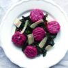 Die Seelenfutter-Gerichte kommen daher in den Kapiteln Eier, Crêpes und Pfannkuchen, Suppen, Dips und Aufstriche, es gibt Frittiertes und Gebratenes, Gemüse zum Wohlfühlen, Essen vom Blech, Dals, Eintöpfe und Currys, Nudeln, Reis und Tofu, Kohlehydrate in Form von Nudeln, Reis, Pasta, Pies und Brot – und natürlich auch Süßes. Yotam Ottoglenghi hat die Rezepte zusammen mit Tara Wighly, der Mitautorin von Simple, seiner Konditorin Helen Goh und der Leiterin der Produktentwicklung Verena Lochmuller erarbeitet und so bunt wie die Herkunft des Teams sind auch die Rezepte – da wird Asiatisches, Nahöstliches und Europäisches fröhlich gemischt.