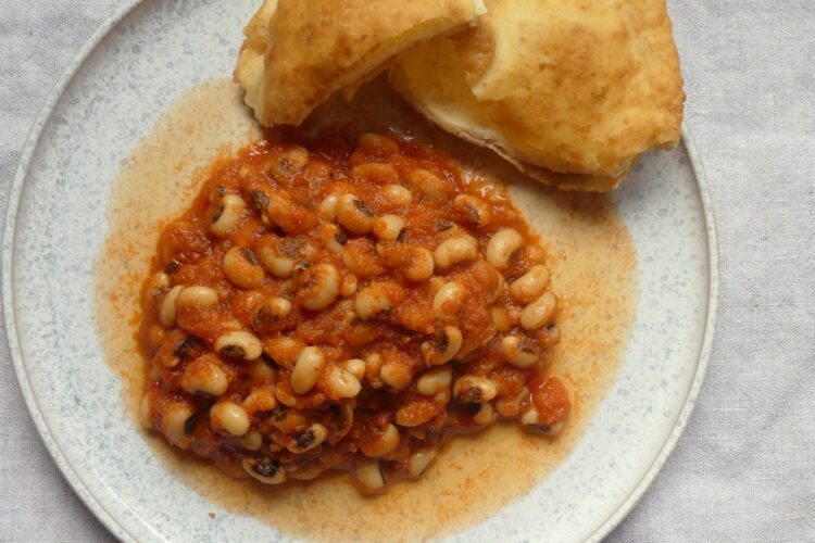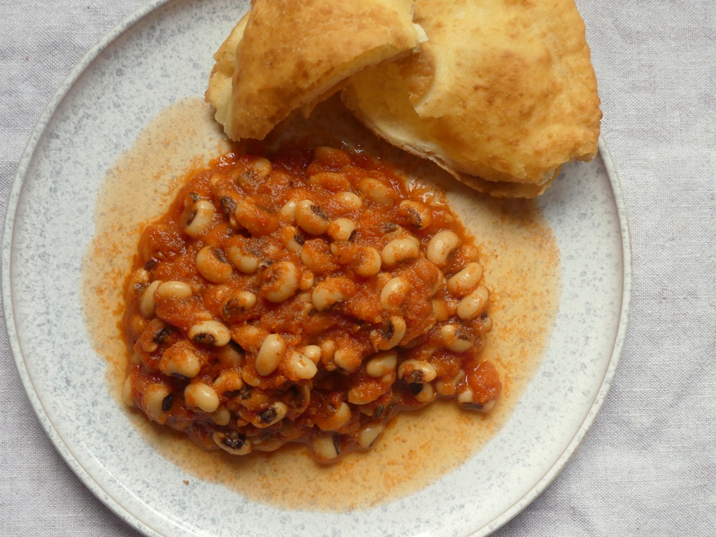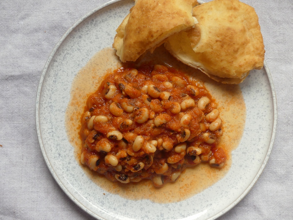 Die Kombination würzige Augenbohnen mit dem frittierten Brot gefällt mir gut!