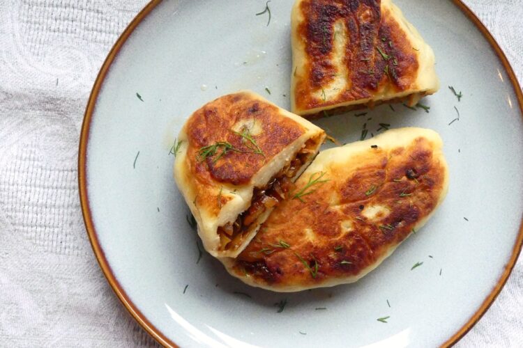 Das ist eines meiner Lieblingsrezepte aus Alissa Timoshkinas Buch über die osteuropäische Gemüseküche*: kleine Küchlein aus Kartoffelteig, die mit geschmortem Weißkohl gefüllt werden.