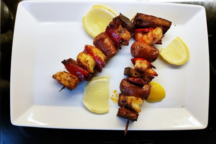 Spieße mit der restlichen Petersilie bestreut servieren. Die Zitronenspalten dazu reichen.