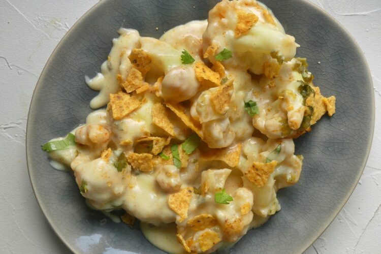Die Idee kommt von Gurdeep Loyal* – er experimentiert gerne mit Zutaten und Aromen und kombiniert alles auch mal anders, als es der Standard ist. Und so wird hier der Blumenkohl mit etwas Chipotle-Paste, Kreuzkümmel, Knoblauch und Paprika gewürzt. Gurdeep Loyal orientiert sich da an einer Kindheitserinnerung – er ging gerne in Tex-Mex-Restaurants und hat diese Aromen in den Auflauf gepackt.