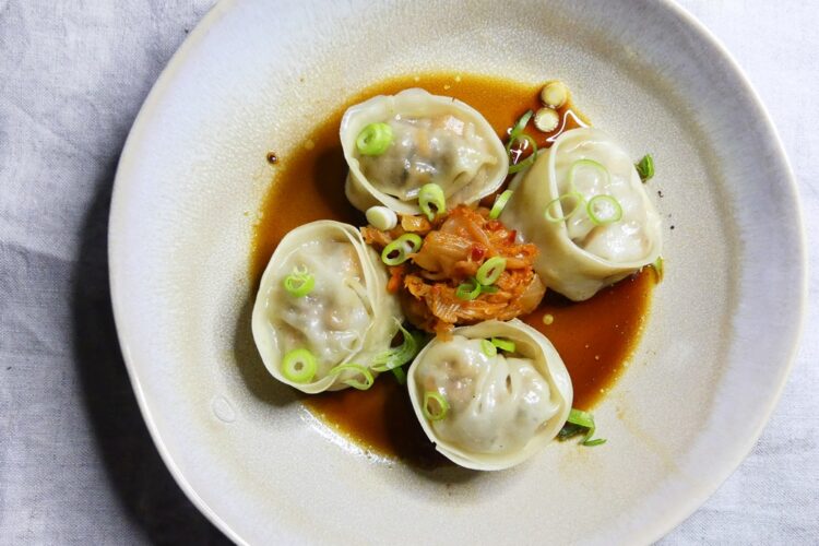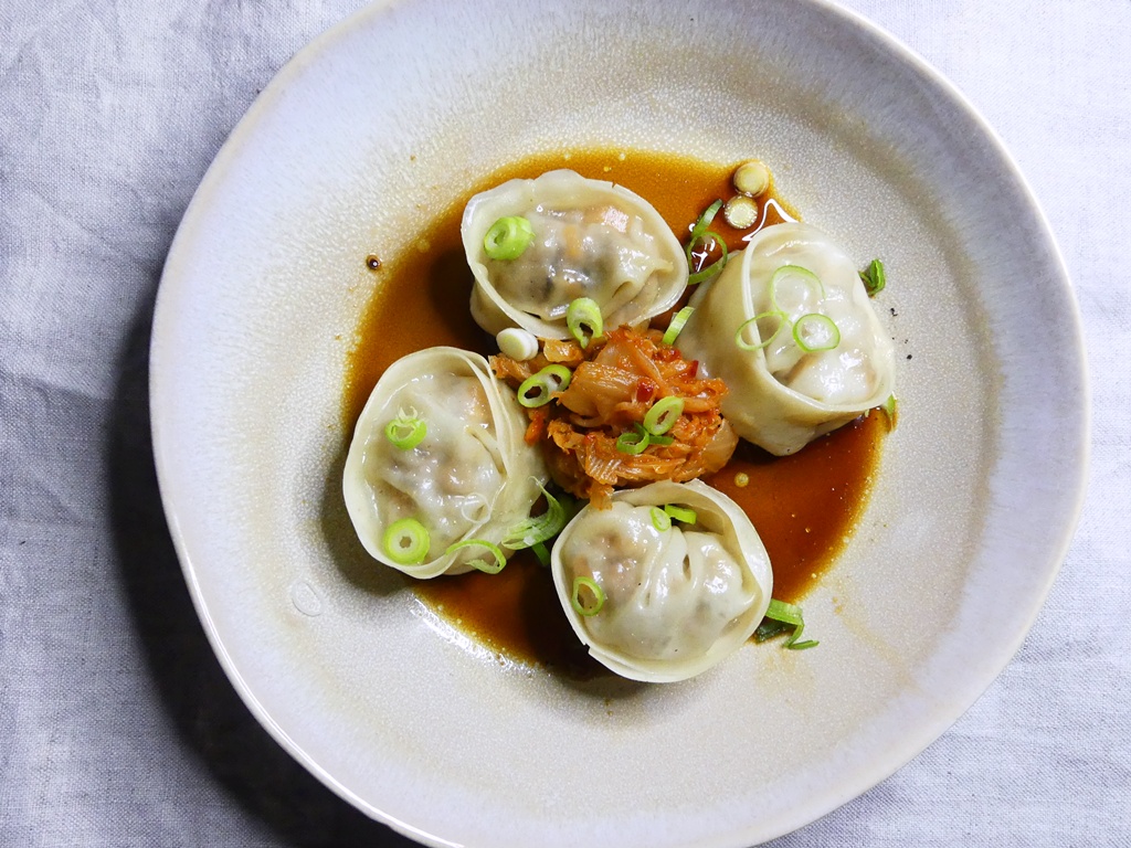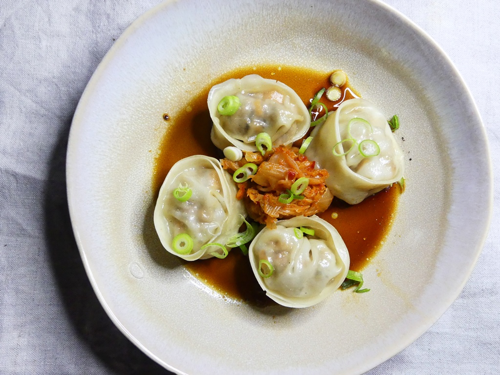 Es gab da eine Lücke in meinem Teigtaschen-Lebenslauf – ich hatte tatsächlich noch nie Mandu gemacht. Dank The Duc Ngo und seinem Kochbuch* ist diese Lücke nun auch gestopft: er serviert in seinem Restaurant Ngo Kim Park mit Schweinefleisch gefüllte Mandu und reicht dazu Kimchi und eine (fast) klassische Dumpling-Sauce.