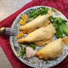 Hier werden zwei Varianten angeboten. Eine mit einer Füllung aus Lammfleisch, Wurst, Speck und Erbsen. Ich habe mich jedoch für die mit Gemüsefüllung entschieden, die aus Mangold, Blumenkohl und Artischockenherzen besteht. Das Ergebnis ist köstlich.