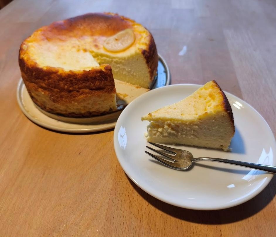 Gewiss, dieser einfache Käsekuchen kann es nicht ganz mit dem berühmten baskischen aus San Sebastian aufnehmen. Da er ohne Teig auskommt, braucht er nicht viel Zeit. Eier, Ricotta, Sahne, Zucker und noch etwas Zitronenabrieb – mehr braucht es nicht. Uns hat er gut geschmeckt.