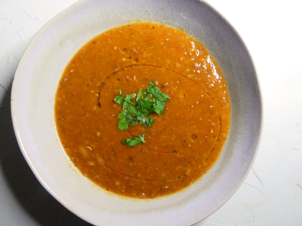 Die Suppe braucht aufgrund der verwendeten getrockneten Bohnen ein wenig Kochzeit, ist aber nicht schwierig zuzubereiten. Sie enthält einen schönen Anteil Gemüse und ist cremig, aromatisch und wohltuend. Wer die Zubereitungszeit abkürzen will, kann statt der getrockneten Bohnen 400 g (Abtropfgewicht) gegarte Bohnen aus der Dose verwenden; dann steht die Suppe in weniger als 30 min auf dem Tisch.