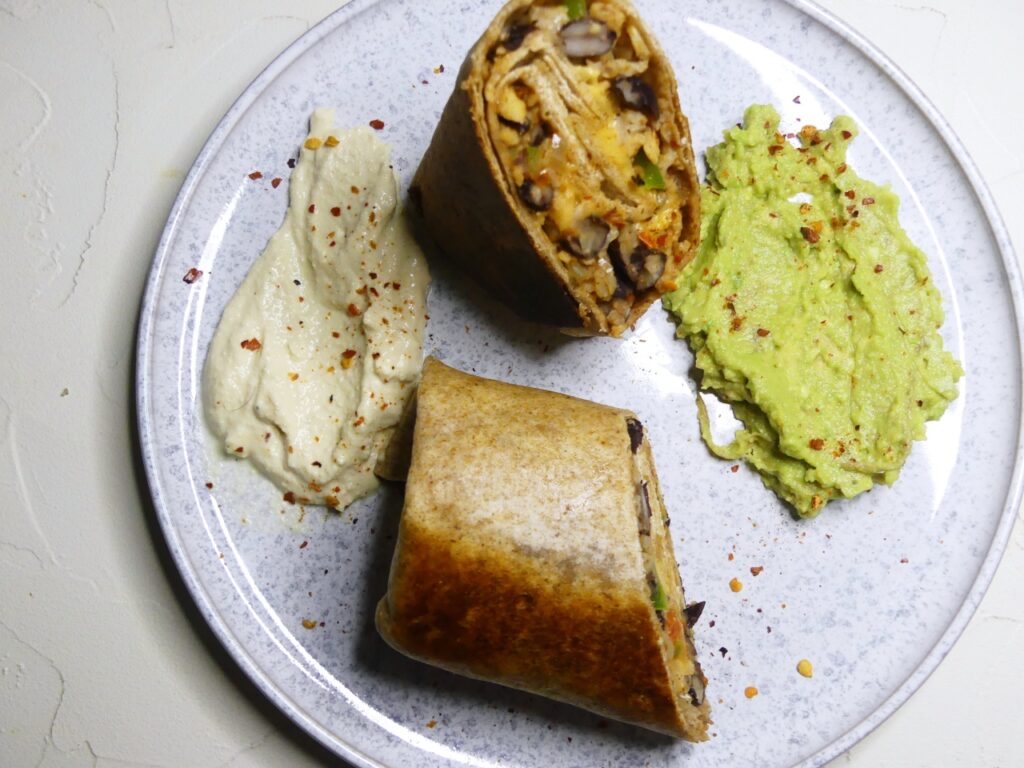 Man kann die Burritos auch einzeln in Backpapier wickeln und in einer Dose verpackt bis zu 3 Tage im Kühlschrank aufbewahren und dann bei Bedarf wie oben garen.
