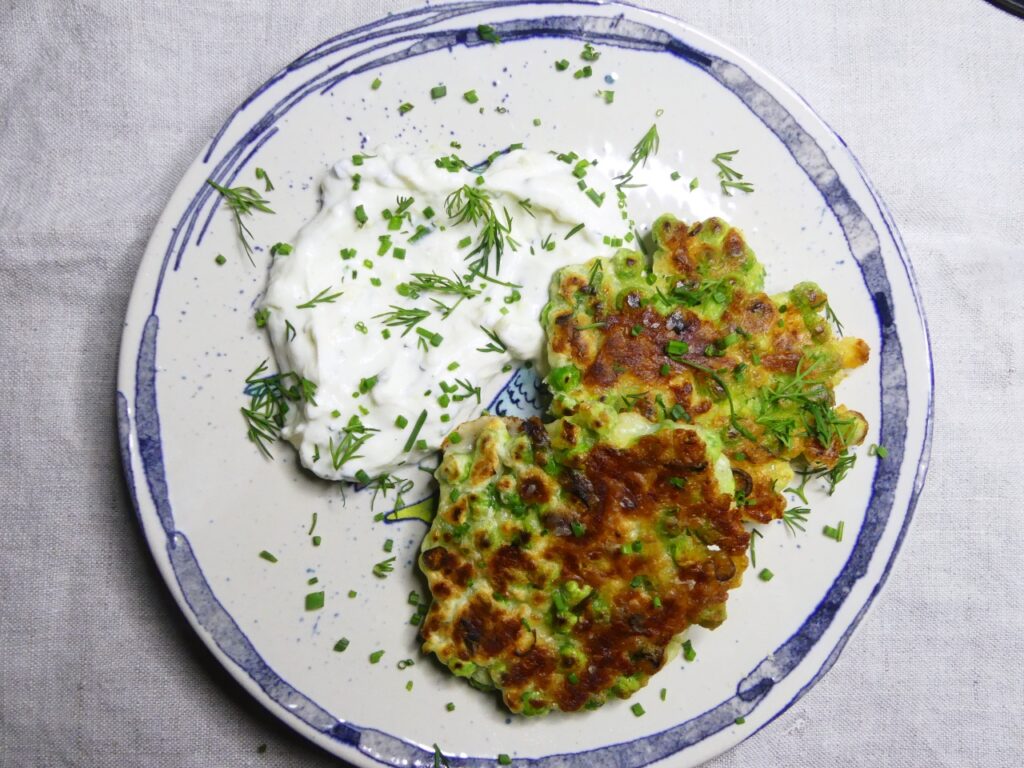 Das ist ein echter Keeper aus Türkei vegetarisch* – so ein Gericht, das auch nach einem stressigen Tag mit Bordmitteln fix auf dem Tisch steht und dabei noch richtig Freude macht: Es wird ein einfacher Teig gerührt, im dem als Einlage TK-Erbsen, Frühlingszwiebeln und geriebener Käse landen. Dazu gibt es einen Dipp auf Joghurt-Basis mit Zitronenabrieb und Knoblauch.