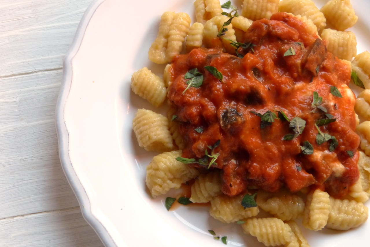 Kichererbsen-Gnocchetti mit Auberginen-Tomaten-Sauce