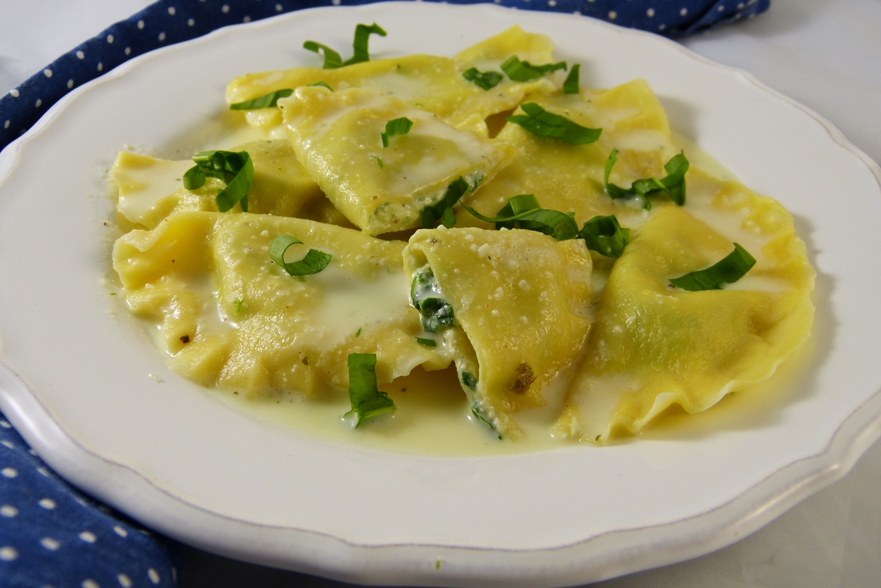 Mezzelune mit Bärlauchfüllung und Ziegenkäsesauce