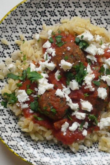 Ich weiß nicht, wie das bei Euch ist, aber bei uns gehen Bällchen aller Art immer. Und das Thema ist so vielseitig! Diese Bällchen hier bestehen aus gegarten Linsen und Haferflocken, sind mit Ras el Hanout leicht orientalisch gewürzt und werden im Ofen gebacken. Serviert wird mit einer Tomatensauce, Orzo und als cremiger, salzig-säuerlicher Kontrapunkt […]