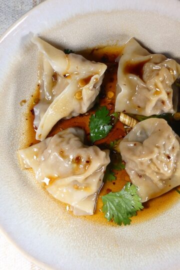 Große Shanghai-Wontons in Chiliöl-Sauce